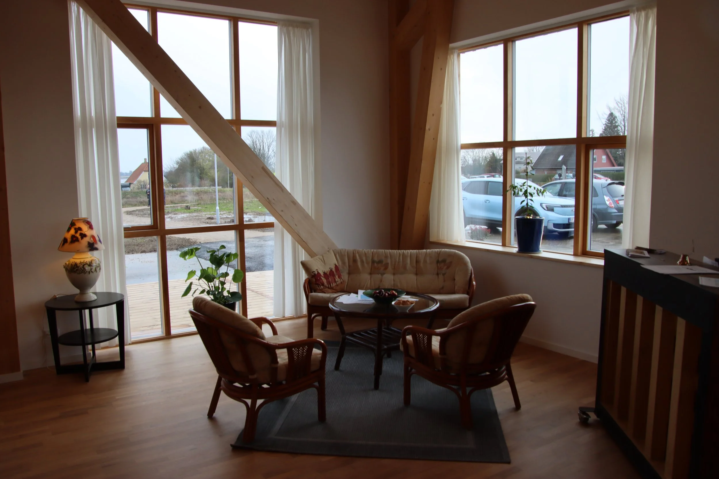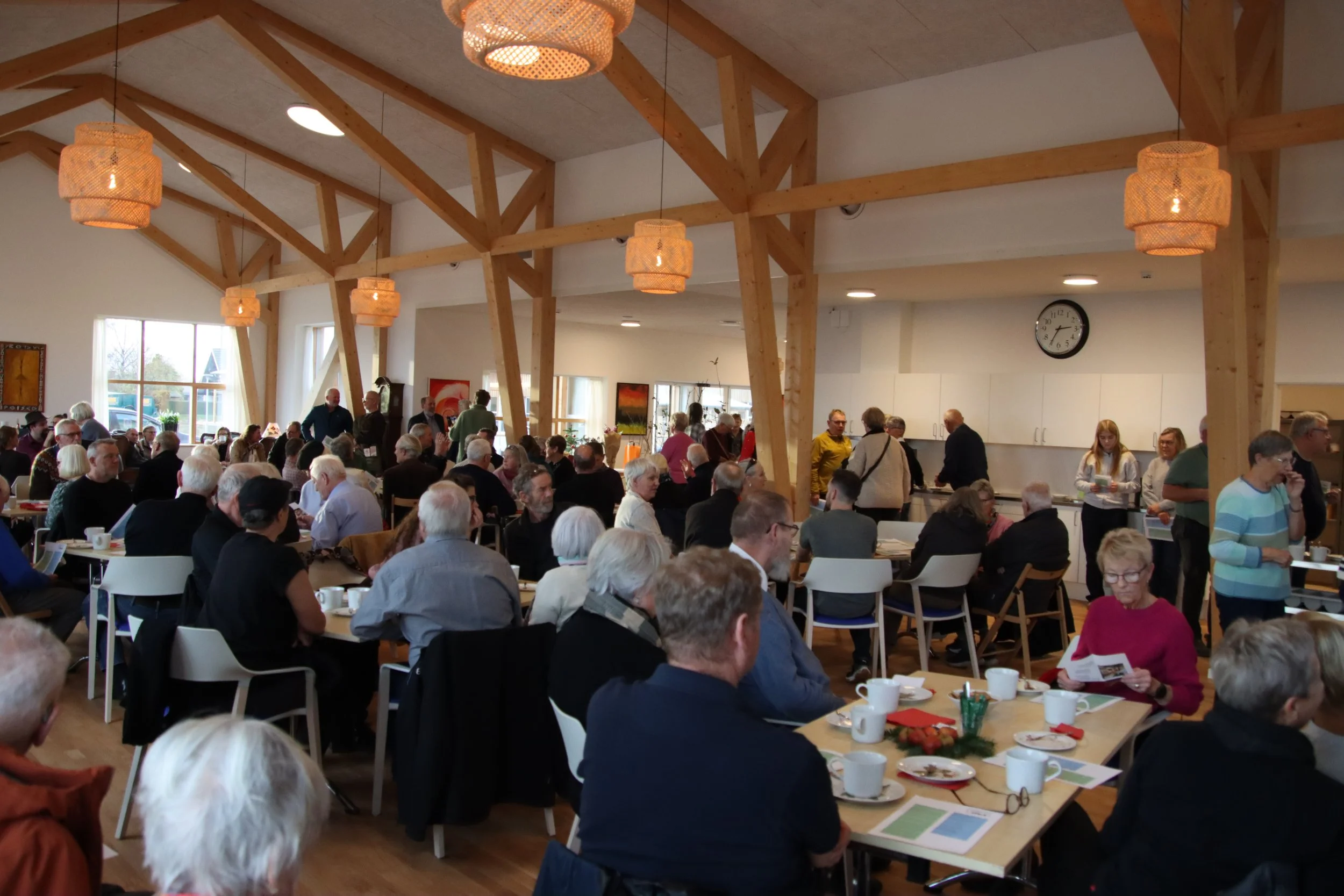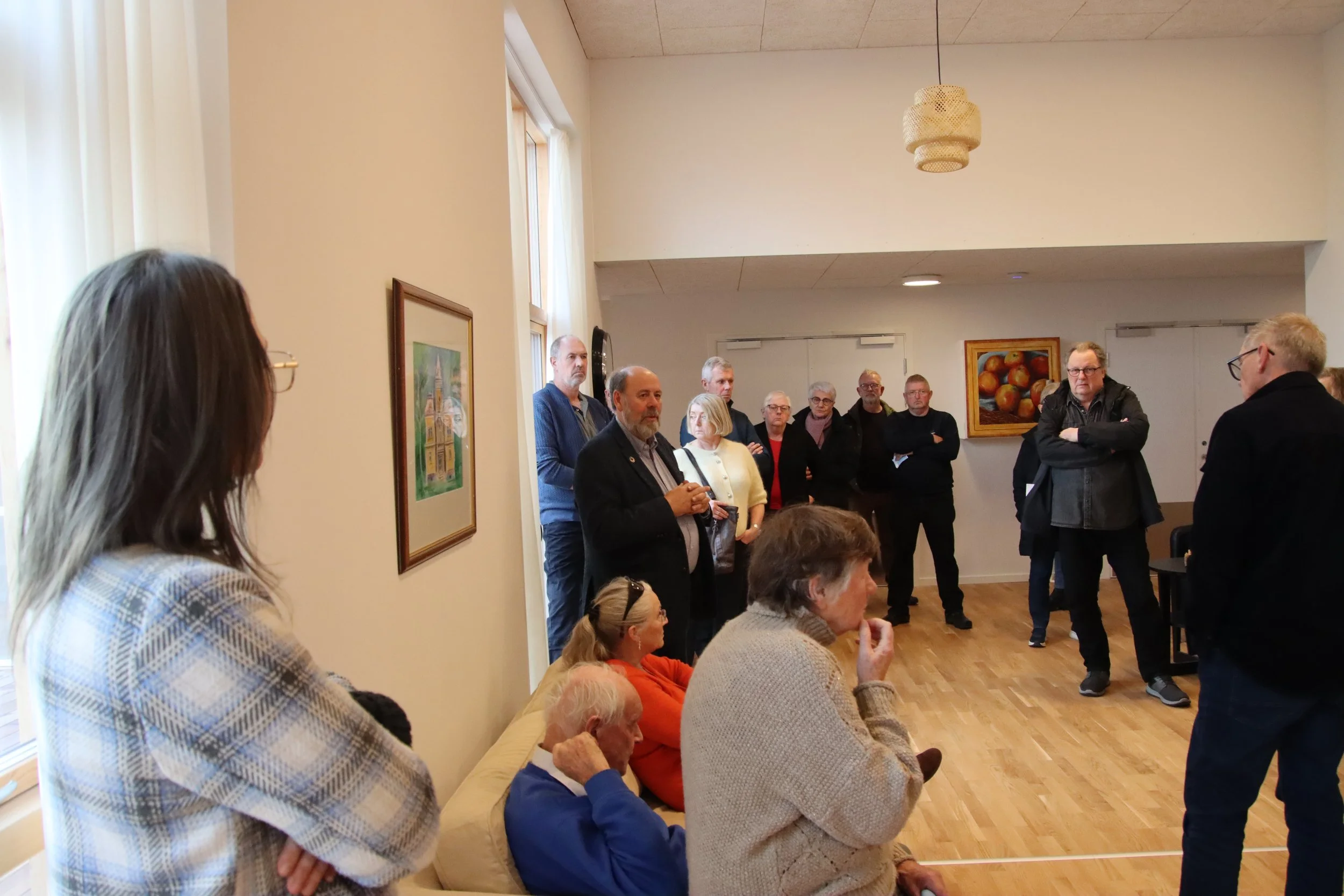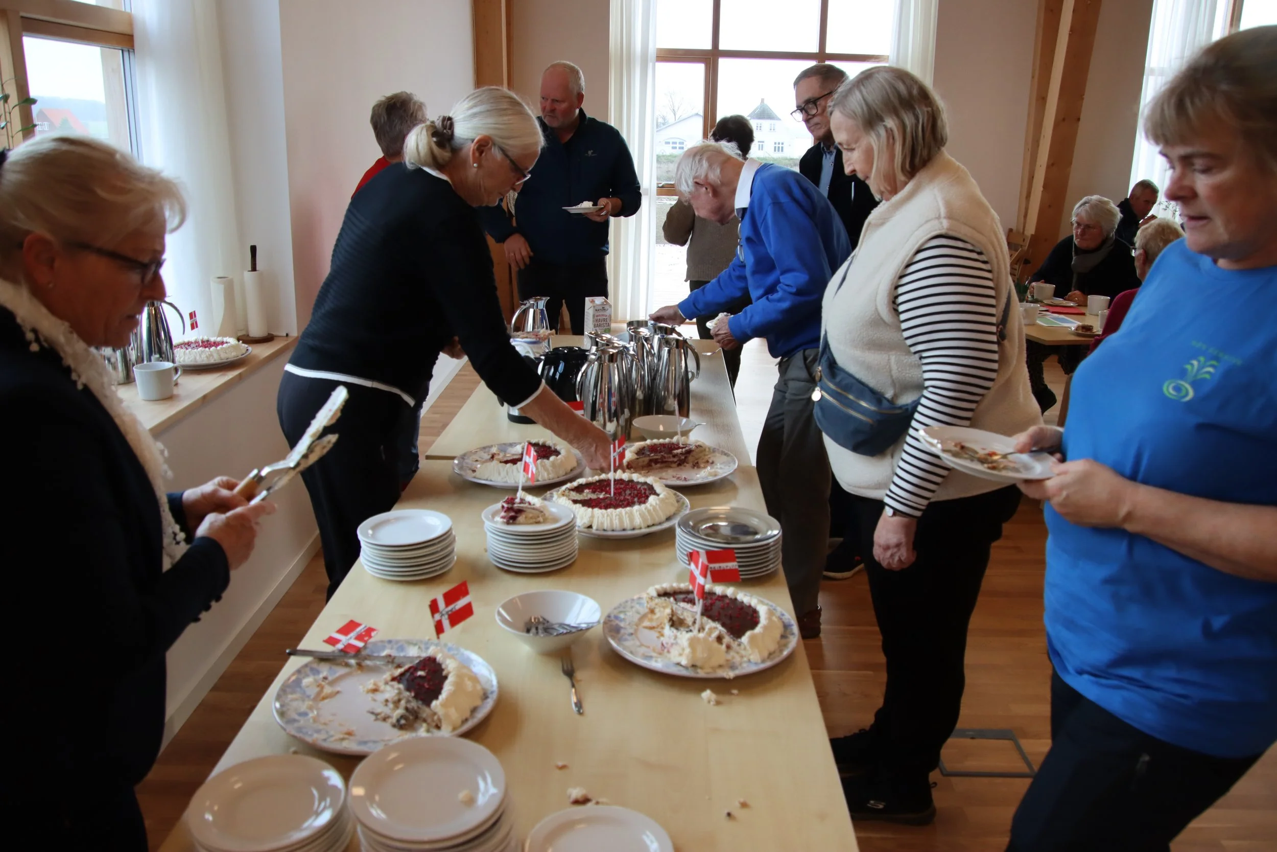 Gæsterne til Åbent Hus blev inviteret på lagkage og rundvisning, hvor der kunne ses nærmere på det bæredygtige byggeprojekt, de indbydende lejligheder og lyse, højloftede fællesrum.