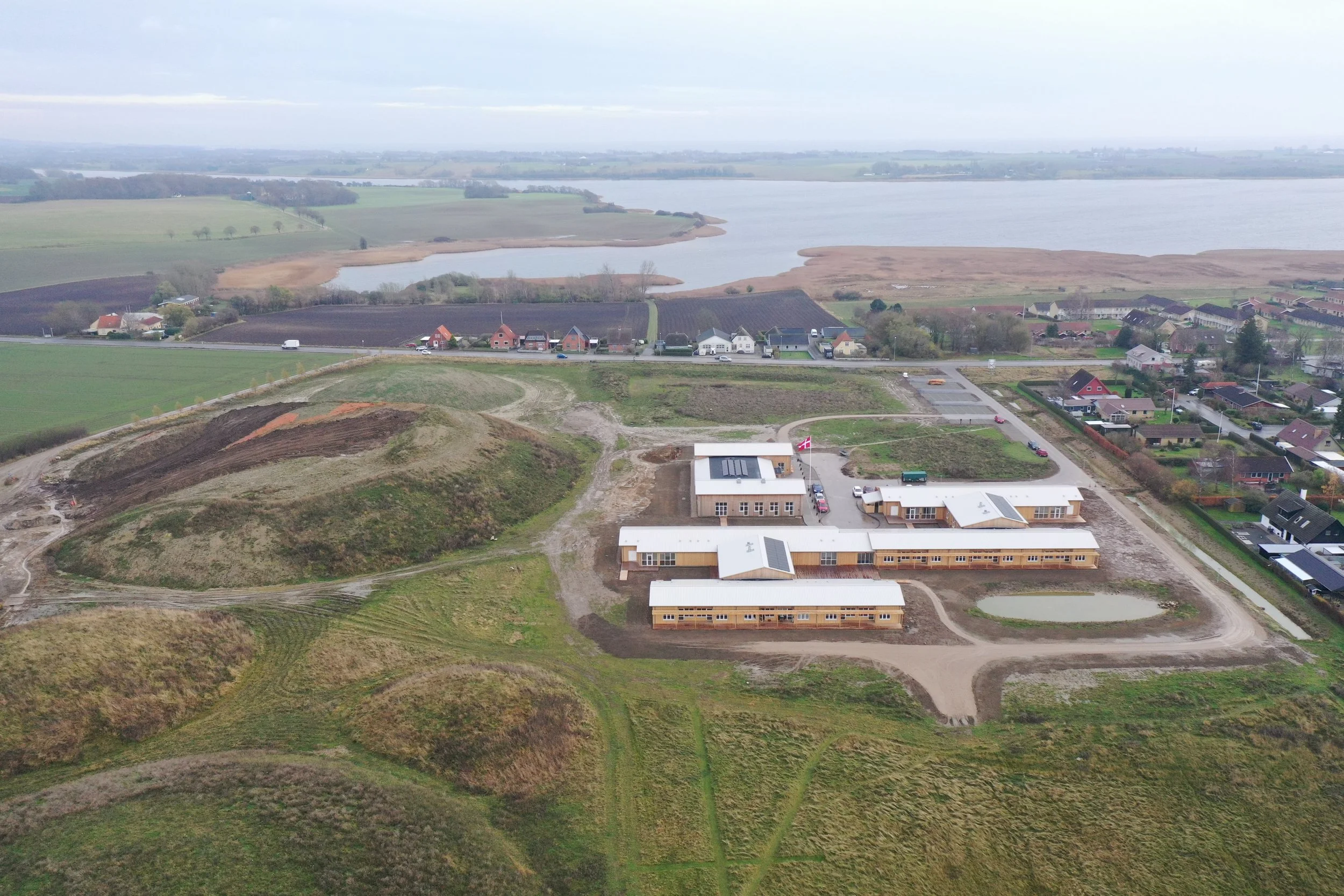 Selv en grå og våd dag i december viser Møn Bakkeby sig fra en charmerende side – og lidt fra oven fornemmer man den smukke beliggenhed og de bløde bakker, der har lagt navn til vores hyggelige sted.